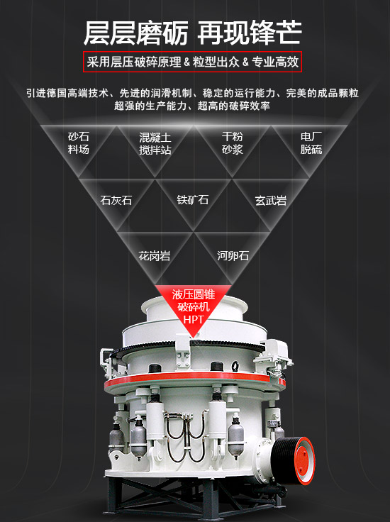层压破碎原理对物料进行破碎,提高破碎效率,降低易损件磨耗,且成品粒型呈立方体,质量高。